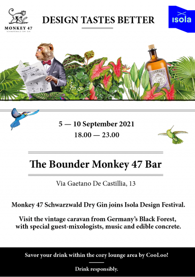 Una design week all’insegna di sapori, design, musica e sostenibilità. In quanto partner di Isola Design Festival, Monkey 47 ha sfidato i designer per la prima edizione degli Isola Design Awards con l’award MONKEY UNUM EX PLURIBUS che premia progetti attenti all’ambiente in grado di unire materiali diversi in un mix creativo di naturalità e innovazione. Vincitori dell’award sono Valentina Rocco + Agma Polimeri con la lampada MIXI, in esposizione alla mostra Materialized allo Spazio Gamma in via Pastrengo 7.